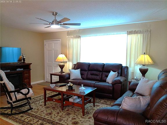Immaculate and Tastefully Appointed 2 Bedroom 2 Bath Single Family Home. Situated on a Nicely Landscaped 1/2 Acre. Living Room Features Luxury Vinyl Plank Flooring, New Leather Furnishings, Electric Fireplace, TV with Roku and Amazon Fire. Large Kitchen with Wood Cabinets and Upgraded Appliances and Pass Thru to Florida Room/ Office. Dining Room Features Wood Table with Leaf and Matching Chairs for Entertaining Up to 6. Upgraded Ceiling Fans and Light Fixtures Throughout. Huge 20 x 15 Enclosed Porch. Ample Parking in back Yard by Shed for Boat and/ or Motorcycle Trailer Parking. Rent Includes Power up to $100 per Month. Also includes Lawn, Trash and Internet. Too Many Extra Features to Mention. No Pets.