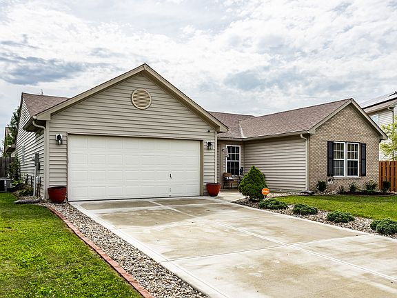Check out this turn-key ready home ready for its new owners! This is a beautifully maintained ranch with three spacious bedrooms, two full bathrooms. Vaulted ceilings, bonus room/office with French doors right off of the entryway make this home unique. Privacy fence in the backyard to enjoy the solitude-or entertain with a large concrete patio. Nearby enjoy all that Williamsburg Villages has to offer, including the community pool, walking paths and a playground. Minutes to the Eagle Creek Park and the interstate. Indianapolis address, Brownsburg School District. Roof and driveway replaced in 2022. Air conditioner 2024, Garbage disposal 2024.