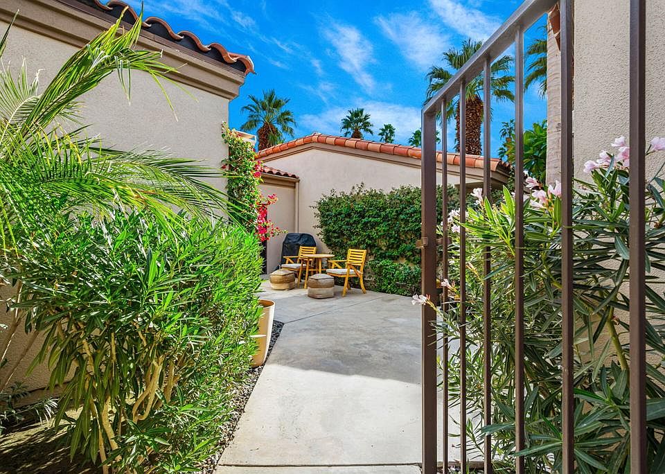 Located behind the gates at PGA West! Remodeled Champion 1 condo overlooking the 8th hole of the popular Palmer Private Course.Courtyard entry takes you into this home offering cement flooring, kitchen has been remodeled with new cabinetry, Quartz counter tops, subway tile, stainless appliances including a commercial grade Bertazonni gas range. The kitchen overlooks the dining & living area forthe open concept! Master bedroom & guest bath have new vanities with quartz counter tops. Step out to the back patio with plenty of dining space, and watch the golfers putt on the 8th hole. This home has everything you need for a second home, or full-time home. Steps away from the community pool & spa!Offered furnished.
