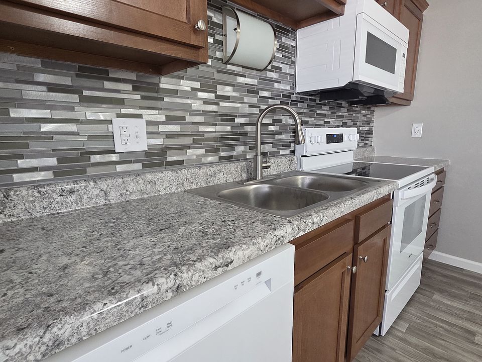 - Large eat-in kitchen with refrigerator, range, microwave and dishwasher