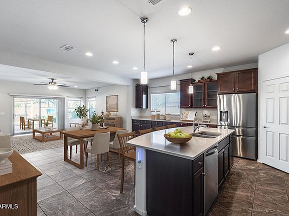 Spacious 3-bed, 2-bath home with 3-car tandem garage in a prime location! Discover comfort and convenience in this beautiful home offering 2,020 sqft of living space plus a den and great room for flexible living. The kitchen is a chef's delight with granite counters, island, walk-in pantry, and rich wood cabinetry. The split master suite features a walk-in closet and dual vanity, providing privacy and function. Outside, the backyard is designed for relaxation and fun with a colorful Jacuzzi under the pergola, pavers, fruit trees, and artificial grass. A 3-car tandem garage adds space for vehicles, toys, or storage. Located in a premier location, you'll enjoy convenient freeway access and proximity to shopping, schools, restaurants, and attractions including Revel Surf Water Park and more!