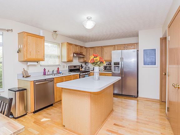 NEW ALBANY SCHOOLS WITH COLUMBUS TAXES! This home has great curb appeal with a beautiful stone front. It offers 4 bedrooms, 2.5 bath, a spacious eat-in kitchen w/stainless appliances, family room w/fireplace, hardwood floors on 1st floor, 1st floor laundry and a formal dining (currently used as home office). The private owners' suite w/vaulted ceilings has a bath w/walk-in shower, double vanity, & walk-in closet. The full unfinished basement is perfect for storage and the opportunity to create your style of extra fun living space. Step outside to enjoy the deck & the extra-large corner lot which provides plenty of space to play!