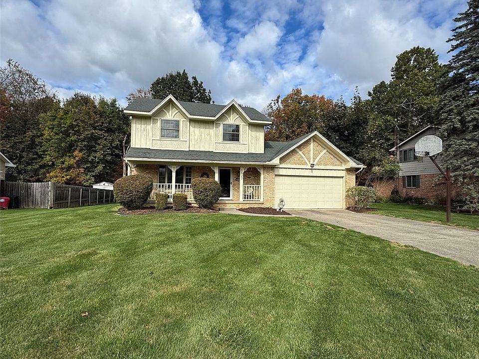 Charming 2-story Colonial offering 1,516 square feet of comfortable living space! This inviting home features 3 spacious bedrooms and 1 1/2 baths. Enjoy cozy evenings in the firelit family room with sliders leading to a lovely patio—perfect for relaxing or entertaining. The covered front porch spans the length of the home, adding timeless curb appeal and a welcoming touch. A 2-car garage provides convenience and storage, while the unfinished basement offers endless potential for additional living space or a hobby area. A wonderful place to call home!