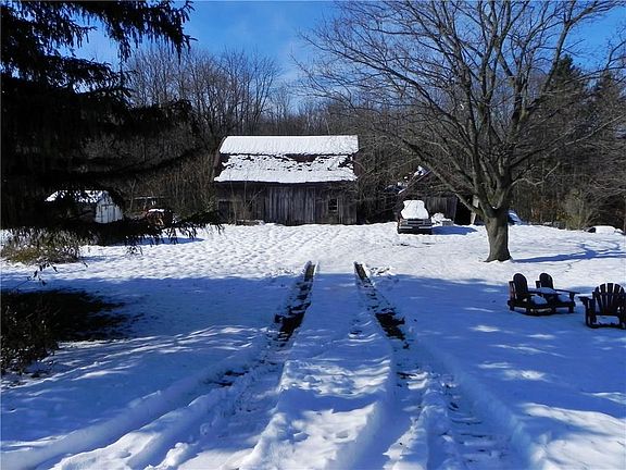 Home on 15.5 acres with 1185' of road frontage.Potential to subdivide.Ideal property for an FHA or conventional rehab loan.Approximately 4 to 6 acres of muckland that owners used to grow crops on(DEC calls it "wetlands".)Large metal roofed barn that is missing some exterior boards,but extra boards are available for repair.2 car garage can't be used as roof as fallen, but owner is also open to removing the garage prior to closing.House is in the process of being cleaned out.Roof,furnace,electric panel are recent.Hardwood floors throughout;enclosed porch;great walkout basement.Needs kitchen & new decor.Beautiful country setting.Easy to show.