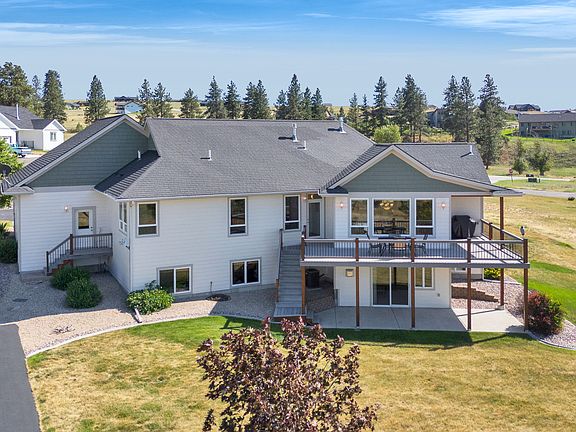 Incredible Florence, Montana! 4 BR + 1 Flex Rm. 3 BA. 980SF att. 3 car gar. + 1280 3 bay det. heated finished shop gar. Great views from spacious deck, perfect for morning coffee or evening relaxation. The main-level primary suite is a personal retreat with a soaking tub, tile shower, walk-in closet,, cozy fireplace and heated tile floor. The functional kitchen includes bar seating, a pantry, and easy access to the outside deck and BBQ area. The inviting open-concept layout is ideal for entertaining, featuring a dining room, office/den/library, and a living room with another fireplace. The LL walkout has expansive views, a patio, and is set up for guests with its own kitchenette, laundry, 3 additional bedrooms, a bathroom, and a family/game room. This lovingly maintained home sits on 2 acres and offers a 3-car attached garage, a 4-car detached garage/shop with an RV bay. RV dump, mature landscapes, paved drive. Great Schools, 22 min to MSLA.
