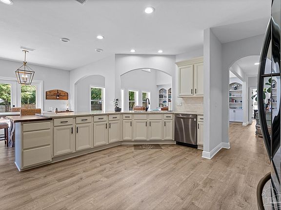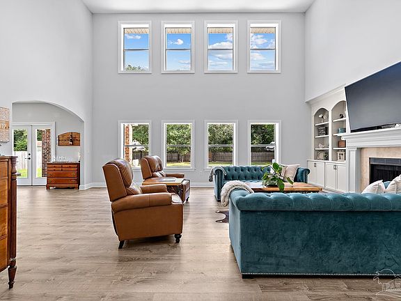 Welcome to Cottonwood—a gated community where elegance, space, and lifestyle come together. This meticulously maintained 6-bedroom, 3.5-bath home spans 4,296 sq. ft. on over half an acre, complete with a private in-ground pool. Inside, soaring ceilings and a catwalk overlook the main living area creating a dramatic space filled with natural light, enhanced by custom built-in cabinetry paired with architectural niches above. The kitchen is a showpiece, featuring stunning Taj Mahal quartzite countertops, custom cabinetry, and a walk-in pantry designed to match the kitchen—providing both beauty and abundant storage. A breakfast nook extends off the kitchen, while a formal dining room and an office on the main level add both function and flexibility. The primary suite is conveniently located on the first floor, offering two walk-in closets and a spa-inspired ensuite bath. Thoughtful touches continue with a butler’s station tucked under the stairs, designed for seamless entertaining and everyday convenience. Upstairs, 5 Bedrooms configured in split-bedroom layout provide privacy for all, with two of the bedrooms offering walk-in closets and every bath finished with beautiful Taj Mahal quartzite countertops and custom cabinetry. A generous bonus/game room completes the second level, delivering endless options for recreation, media, or multi-use space. Outdoors, the lifestyle centerpiece is the expansive, beautiful resort style in-ground pool, framed mature landscaping that backs up to privacy. A side-entry two-car garage and an oversized driveway further elevate the property’s curb appeal. Set within this exclusive community, this residence blends custom detail with everyday livability—crafted for those who want space, style, and a home that truly stands apart.