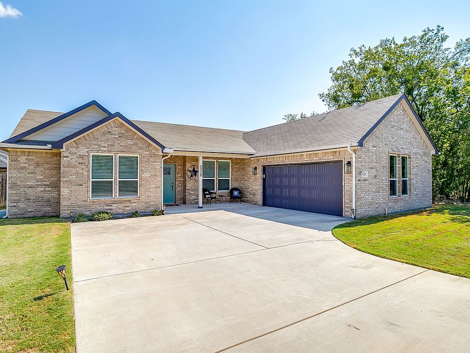 FROM PENDING TO BACK ON THE MARKET - BUYER WAS LAID OFF FROM THEIR JOB SO THEY HAD TO TERMINATE - NO FAULT OF THE SELLER - Roof just replaced 10.21.2025, along with the gutters, garage door and other itmes on the approved insurance list. Access nearby to Lake Granbury. This 3 bedroom, 2 bath home is located in Canyon Creek, which has a guard and access-controlled entry 24-7 and a daily courtesy patrol from 7 am to 12 pm. This single-story gem is light and bright and showcases stunning white & light gray granite counters in the kitchen, on the beautifully appointed kitchen island, both bathroom vanities and the utility sink in the laundry room. Spacious open concept connecting the living, dining and kitchen. The kitchen features stainless steel appliances, a large entertaining island for casual meals, abundant cabinetry and shelving, and a generous pantry. Easy-care, ceramic, wood-look flooring flows throughout the main spaces. The primary suite includes a roomy walk-in closet with extra shelves. East-facing backyard brings late afternoon and evening shade while relaxing and enjoying the covered patio with friends or family. The home has a sprinkler system and wood privacy fence. The attached two-car garage leads into the laundry room, which has a utility sink. Community amenities include two swimming pools, Lake Granbury access, two boat docks, a fishing pier, tennis and pickleball courts, a playground, and a rentable clubhouse. Minutes to Historic Granbury Square’s boutiques, dining and live theatre, with scenic Comanche Peak nearby.