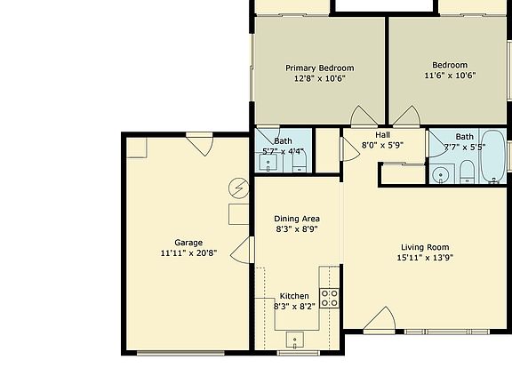 Note: shower is shared since the other bedroom has half bath.