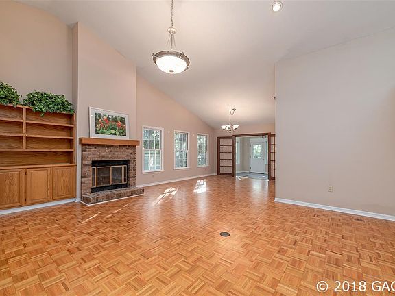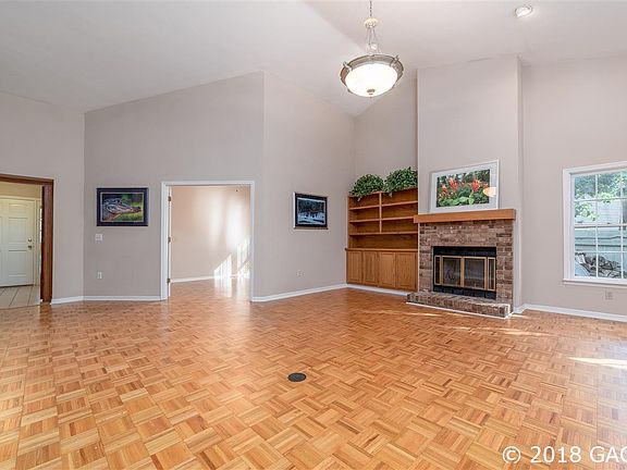 Well maintained, 3 bedroom 2 bath home in a great location within easy walking distance to the Haile Village Center. Features include beautiful parquet flooring, a large open great room with cathedral ceilings, light filled spaces with skylights, a very liveable florida room area that overlooks a large back yard that opens to Haile walking trails , and recent updating. Roof in 200- 9 and HVAC in 2010. Located in a quiet and peaceful neighborhood with a spacious backyard that includes a very usable brick paver area.