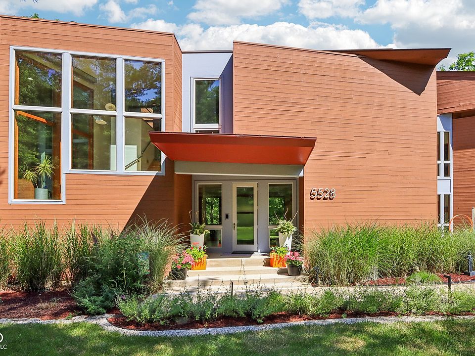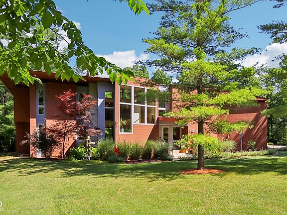 WOW! Architect John Lindstaedt served clients as lead designer on large commercial facilities in the Midwest and East Coast. His excellence is highlighted in this Frank Lloyd Wright inspired custom commercial "Pavilion Concept" design built on a secluded 3.23 acres and .4 miles of trails-(3 trail bridges, benches and bike obstacles), giving transparency to the inside and outside from each pavilion. Heated floors throughout the home (and garage) give warmth while enjoying the trimless drywall finish with a reveal detail with Architectural F Reveal Bead, Pella windows with custom shades- (master, upstairs bedroom, upstairs guest bedroom, upstairs breezeway, staircase and main floor), solidcore commercial interior doors, all while listening to the sound system that includes the back porch and garage. The highest level of craftsmanship represented throughout encompassing the Primary bedroom on the main featuring California closets- (master, laundry room, upstairs guest room and coat closet), custom garage storage system, french drains-no gutters, 2x6 exterior walls, Generac whole house generator, professional home theatre, home intercom system, home security system, surveillance system and driveway alarm. This is the ultimate dream home!