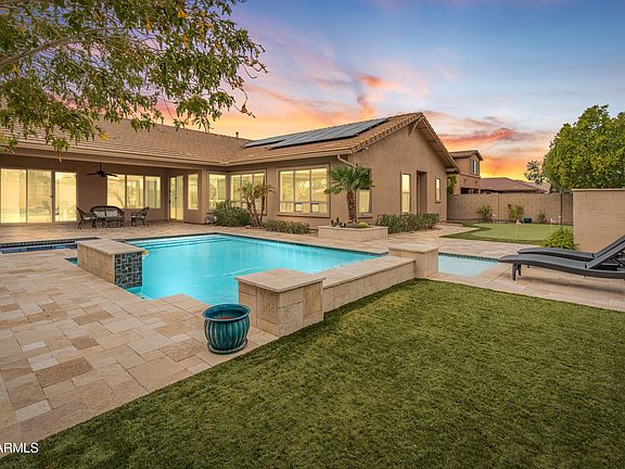 OWNER PAYING OFF SOLAR!! AMAZING FEATURES INCLUDE HEATED POOL/SPA, PUTTING GREEN, SOLAR PANELS, MOUNTAIN VIEWS AND NO NEIGHBORS BEHIND YOU!! Stunning 4 bedroom, 3 bath in desirable Stetson Valley. Featuring a split floor plan this well appointed home has a formal dining room, cozy family room, gourmet kitchen with granite counter tops, stainless appliances, rich cabinetry and large island. Large Primary bedroom with en suite featuring a soaking tub, dual vanities and his/hers closets. Great outdoor space with large covered patio over looking the beautifully landscaped backyard with putting green and amazing pool and spa. Great location with quick access to bike trails and walking paths. Shopping, restaurants and freeways all within easy distance. This is a terrific home!!