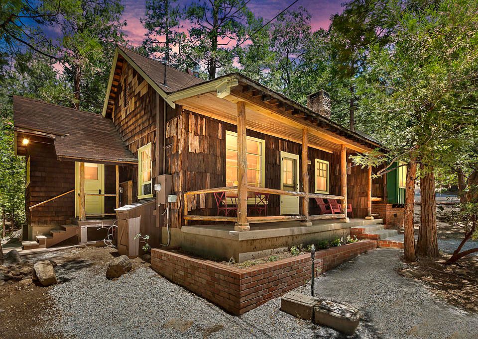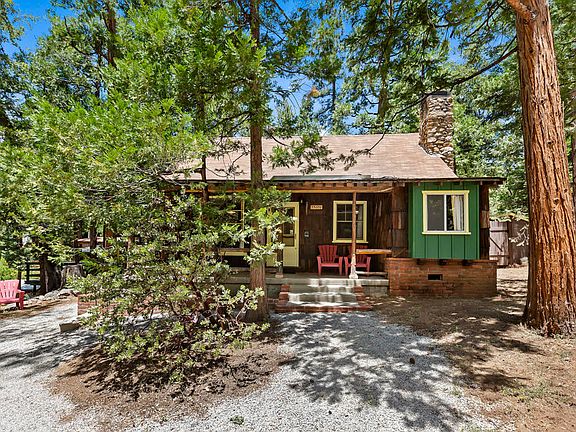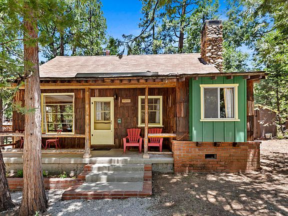 Step back in time and embrace mountain living in this charming 1946 vintage cabin, tucked beneath the pines in a tranquil Idyllwild setting. The inviting living room centers around a classic brick fireplace perfect for cozy evening while the dining area features a free-standing stove that adds both warmth and rustic character. This well-loved retreat offers two comfortable bedrooms, a 3/4 bath, and a versatile bonus sleeping room ideal for guests, hobbies, or a quiet reading nook. Enjoy morning coffee or evening relaxation on the covered front patio, surrounded by the sights and sounds of nature. An additional studio guest cottage provides even more flexibility, complete with its own 3/4 bathroom and stacked washer/dryer ideal for visitors, extended family, or creative workspace. Outdoor living is a breeze with a spacious patio, all set in a peaceful, wooded environment that truly captures the spirit of Idyllwild. This is your opportunity to experience classic mountain charm with modern comforts schedule your private showing today and discover the serenity of cabin life in the trees.