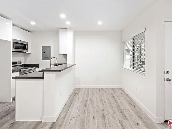 Located south of Burbank Blvd, it's just 0.4 miles from the North Hollywood subway station and 0.5 miles from NoHo Arts District's restaurants, entertainment, and nightlife. Enjoy nearby supermarkets and easy access to the 170, 134, and 101 freeways. This light-filled, modern unit offers an open floor plan with a spacious living room, private balcony, and brand-new kitchen featuring stainless steel appliances, modern cabinetry, and quartz countertops. The bedroom includes built-in closet organizers, and the remodeled bathroom boasts stylish fixtures. Additional features include central air/heat, double-pane windows, laminate floors, and recessed lights. Located in a gated, 8-unit building with covered parking (second space available for extra cost), water, trash, and sewer are included. Refrigerator included.