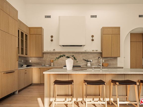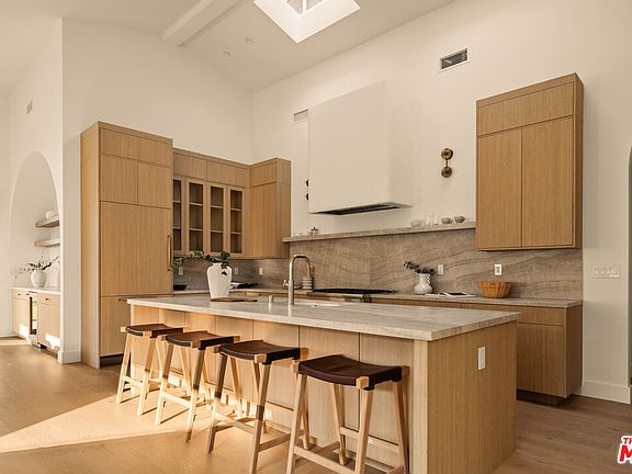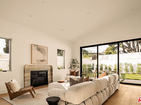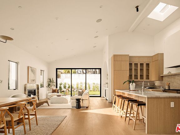 Welcome to this stunning 4-bedroom, 4-bath retreat in the highly sought-after Osage neighborhood of Westchester - a modern organic home where dramatic scale meets refined comfort. Step through the arched foyer into the expansive main living area, where 17-foot ceilings and skylights flood the space with natural light. A striking travertine fireplace with rounded accents anchors the room, while sliding glass doors open to the patio, creating seamless indoor-outdoor living. Wide-plank engineered white oak flooring flows throughout, adding warmth and sophistication to every space. The chef's kitchen is both elegant and functional, featuring rift white oak cabinetry, Taj Mahal porcelain counters, and high-end Thermador appliances that make everyday cooking and entertaining a pleasure. Just off the kitchen, a large bar with open shelving provides an additional space to gather, or display your favorite collections. Each bedroom offers vaulted ceilings and its own sense of retreat, while the bathrooms are finished with timeless materials and thoughtful details. A one-car garage with direct entry adds convenience to the home's thoughtful design. Created with sophistication and comfort in mind, this Osage gem captures the essence of modern California living. With soaring interiors, curated finishes, and effortless flow, this home invites you to experience Westchester at its finest.
