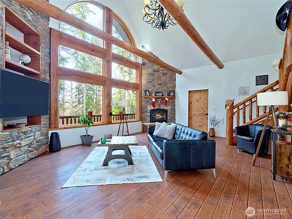 Stunning Modern 3 BR , 2.5 BA Log Home on 3.3 Acres .This 3,115 sq.ft .retreat blends rustic charm with modern luxury in a serene natural setting. After purchase ,the seller remodeled home top to bottom,,including newly finished lower level, adding BR, BA,  family room.Open-concept great room features floor-to-ceiling windows, a stone fireplace, wood beams, heated floors all over the home.The sleek  kitchen includes a granite island and gas stove. The primary suite offers double walk-in closets and a spa-like bathroom. Step outside to the wraparound deck with a hot tub and BBQ area. A new asphalt driveway leads to a 2-car garage. Generator, Starlink for internet ,deck furniture stays . Pre-inspected and this rare gem is waiting for you!