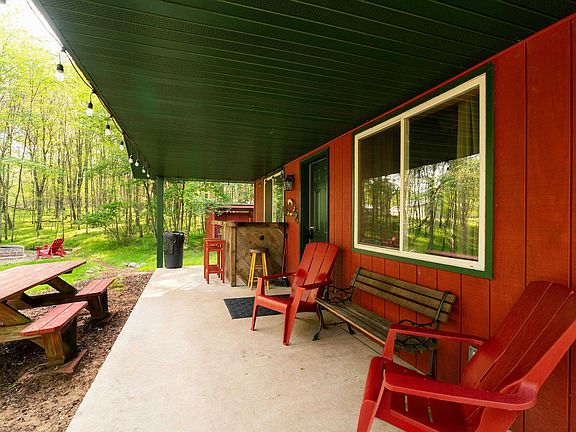 Welcome home to this cozy 2 bedroom, 1 bathroom haven, offering a blend of modern comfort and natural beauty near lakes and trails. Inside, the spacious living room boasts a wood pellet stove for comfort and plenty of space for hosting gatherings. The kitchen is welcoming and convenient for entertaining and offers extra seating at the breakfast bar. Lastly, this slab home features in-floor heat, full bathroom and wood ceilings. This home offers seclusion from the city life and has great amenities for relaxation with the sauna, fire pit and a bar under the porch. Outdoor enthusiasts will enjoy access to numerous groomed ATV trails that span all across NW Wisconsin. It is located within minutes from many public boat launches . If you’re looking for a year-round residence or vacation retreat, be sure to check out this home! Home is currently being used as AIRBNB, so showings will be limited in regards to accommodating bookings.