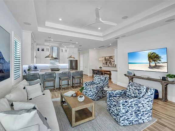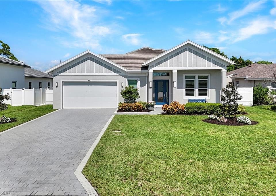 Coastal Elegance Meets Effortless Naples Living. Welcome to your coastal dream home, a spectacular newer construction offering 3 bedrooms plus a den, 4 full baths on an expansive lot and a half that provides space and privacy. Thoughtfully designed and masterfully crafted, every detail of this residence reflects the essence of refined yet relaxed Naples living. Step inside and immediately feel the sense of scale and sophistication. Ten-foot ceilings throughout are elevated by 11.5-foot double tray ceilings in the foyer, den, kitchen, great room, and primary suite. Wide-plank porcelain tile flooring through out, plantation shutters, and hurricane-impact windows and doors. At the heart of the home, the light-filled gourmet kitchen shines with white shaker cabinetry, honed Dolomite countertops, including an induction cooktop, convection oven, and microwave drawer. A custom double-door pantry offers abundant storage, while the built-in wine cooler and Sonos sound system make entertaining a pleasure. The smart home wiring allows you to control lighting, sound, and systems with a simple tap on your phone. Each bedroom retreat provides comfort and privacy, complete with California Closets and beautifully finished bathrooms. The primary suite features expansive vanity, a spacious walk-in shower, and sliding glass doors that open directly to the lanai. Step outside to your private garden oasis, where a sparkling saltwater pool are surrounded by lush tropical landscaping. Enjoy alfresco dining at the outdoor kitchen with gas BBQ, unwind in the outdoor pool shower, or host friendly games of bocce. Lanai is protected by electric roll down shutters for convenience and comfort. Additional highlights include a 2.5 car climate controlled garage for the car enthusiasts or hobbyist and a whole house generator powered by a 500 gallon buried gas tank, ensuring seamless living year round. Ideally located just minutes from Vanderbilt Beach and Mercato’s premier shopping, dining, and entertainment, this home captures the best of Naples coastal luxury, stylish, smart, and ready to enjoy!