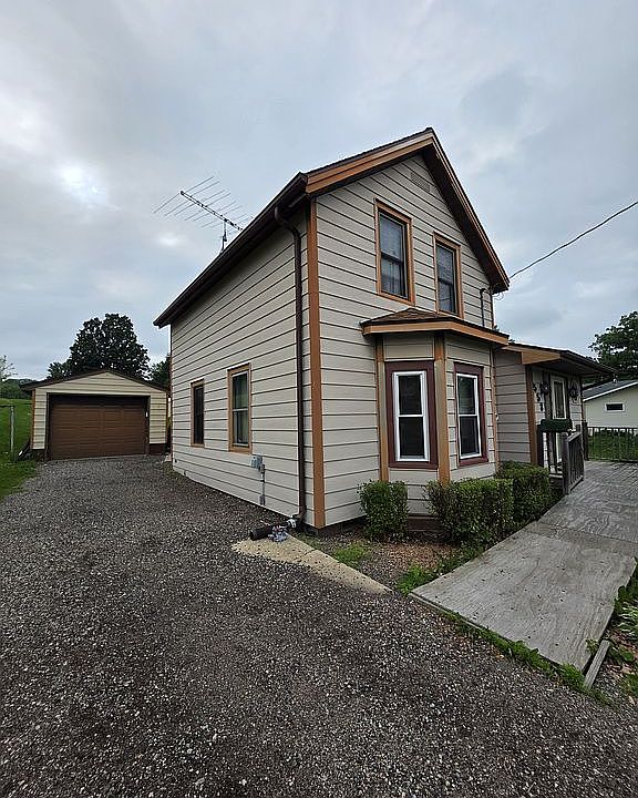 2 bedroom, 1 bathroom home with open office space upstairs. Unfinished basement with furnace, & waterheater. Has propane heat, central ac. Detached garage plus small shed out back. Lots of potential!