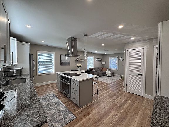 Inside, you’ll find 3 bedrooms and 1 bathroom across approximately 1,095 sq ft of open-concept living space. The home includes laminate flooring, a modern kitchen with stone countertops, plenty of cabinet space, central heat & air, and a built-in central vacuum system. Appliances are included — washer and dryer too — making this home truly move-in ready.