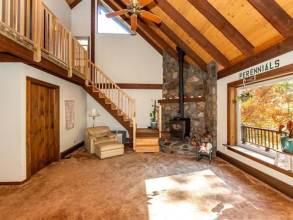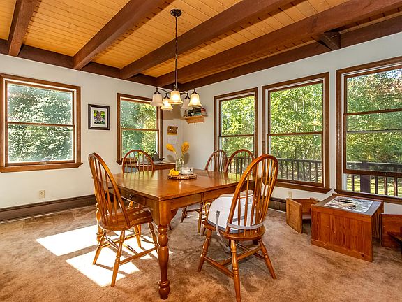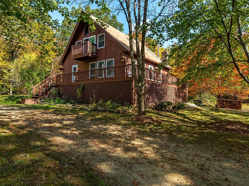 Welcome Home! Charming chalet style cape tucked back on 3 country acres framed by stonewalls. This sunfilled home boasts and open floorplan, cathedral beamed ceilings, stone hearth with a cozy woodstove, 3 bedrooms, 1&1/2 baths, natural woodwork & views of lovely acreage from nearly every window. Efficient kitchen is fully applianced (some new) & open to enjoyable dining area. Some updates have been done and a great opportunity to add your personal touches & refreshing. Full basement offers future expansion space. Well maintained systems, laundry area & generator hook-up. Enjoy your morning coffee and peaceful views from this wraparound deck. The lot is level with perennial gardens, gorgeous shade trees and newly fenced pasture & outbuilding for small farm annimals. Plenty of room for entertaining, child & pet play and future expansion. * Showings start Saturday 10/16 from 10-4 by appointment only. Masks required.
