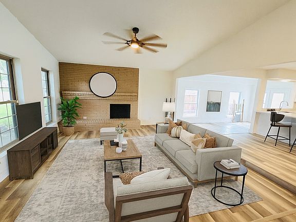 Welcome to this beautifully remodeled home in Garland! Featuring a modern open-concept design, this residence offers a spacious living area with a cozy fireplace, new laminate flooring, and plush carpet in the bedrooms. The fully updated kitchen showcases quartz countertops, brand-new appliances, and plenty of storage, while the bathrooms have been completely renovated with ceramic finishes, including a stunning walk-in shower in the primary suite. Every detail has been thoughtfully designed to combine comfort and style, making this home move-in ready for your family.