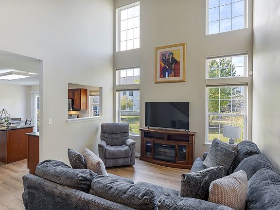 Welcome to the sought-after Butterfield model located in the resort-like community of Northampton in Cambridge Lakes! Step into this beautifully upgraded home featuring granite countertops, NEW luxury vinyl plank floors, and sleek stainless steel appliances in the kitchen. The kitchen is freshly painted and offers an eat-in area that overlooks the patio with beautiful landscaping. The space is perfect to enjoy your morning coffee and take in the park-like setting. The soaring ceiling in the family room with 2-story windows lets in an abundance of light (upper windows feature custom automated shades) The 2-bedroom layout also includes a versatile loft with hardwood floors, easily convertible into a third bedroom, office, or entertainment space. The large primary suite is your private retreat, complete with a separate shower and a relaxing garden tub. Both upstairs bedrooms include plantation shutters AND walk-in closets! The laundry room completes the 2nd floor and offers a Bosch washer and dryer and overhead cabinets for storage. Cambridge Lakes offers a vibrant lifestyle with exclusive access to private pools, a clubhouse with a party room, a modern workout facility, a gym, a basketball court, a game room, a kids club, beautiful walking paths, parks, playgrounds, and a scenic fishing pond. The location offers quick access to I-90 and close proximity to public schools and the Metra Station which makes commuting and travel convenient. Don't miss your opportunity-this home won't last long!