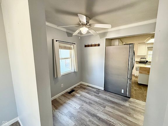 Small town living. This nicely updated two bedroom one bath home is ready for you. Kitchen includes all stainless steel appliances and the center island. Both bedrooms are very nice sized with large closets. Main bathroom has been completely updated! Large lot with a back gravel driveway leading to the oversize two car garage! Front gravel driveway has plenty of room for guest parking. Covered front porch has new railing. Updates include: HVAC 2020, Roof house and garage 3/2025, Bathroom remodel 12/2024, Refrigerator new 2024 (has ice maker, but waterline has never been ran into the fridge), luxury vinyl laminate 2023, interior paint 2023, garage door opener and controls 2020, some new light fixtures and new smoke detectors 2025, under kitchen cabinet lighting with remote control and kitchen center island.