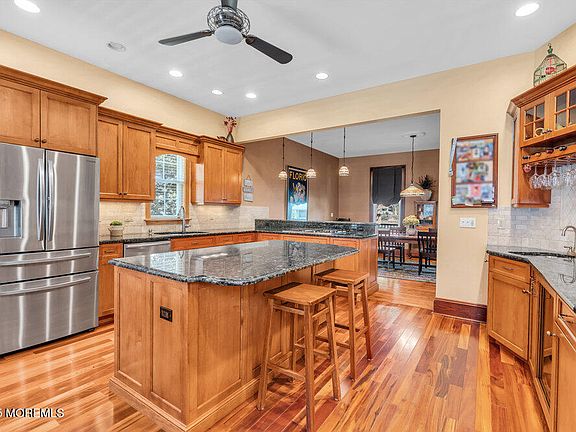Nestled just steps from beautiful Spring Lake, it's a straight shot to the pristine beaches and a short bike ride to the vibrant downtown. From your front porch, enjoy the relaxing rhythm of beach town life as you sip your morning coffee or evening cocktail, watching day trippers come and go. Inside, original hardwood floors, soaring 10-foot ceilings, and generous room sizes create a warm and inviting atmosphere. The custom kitchen is a true centerpieceperfect for entertainingwith a large center island, breakfast bar, and a spacious eat-in area.