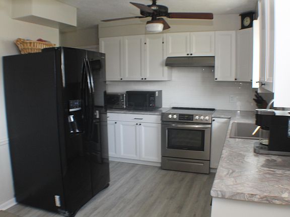 Ranch home with newly remodeled kitchen. Livingroom downstairs, extra bedroom and full bath with jacuzzi tub, fireplace and walk out patio. Established and quiet neighborhood. Updates in the past few years include carpeting,