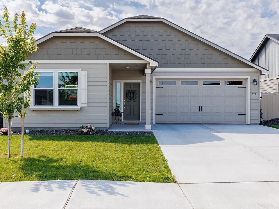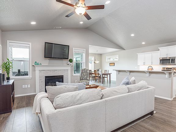 MLS# 287090 Great 1979 SF home in Cottages of Clearwater Creek, wonderful location. This like new home with open floor plan has 4 bedrooms, 2 bath, quartz throughout. Move in ready home includes the fridge, washer and dryer. Master is oversized with high ceilings, shower, tub and a walk in closet with shelving. Huge vaulted ceiling with fireplace and lovely walk-in pantry. Back yard is fully fenced with an extra gate to get to the walking trail behind home, very private with a full covered patio. Largest 1 story built in this neighborhood, built in 2020.