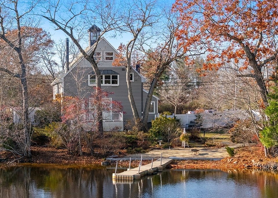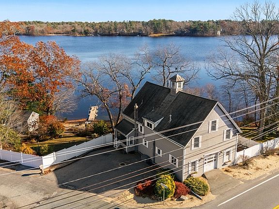 Former Monponsett Inn stable, historically connected to the iconic lakeside hotel and function venue between East & West Monponsett Ponds—now a unique live/work conversion with approx. 1,500 sq ft per floor and private waterfront yard with dock! Enjoy a private fenced backyard with dock, beach area, gardens, perennials, and a shed. The upper level features an open floor plan with custom built-ins, panoramic water views, loft, storage room, and flexible layout for 1–2 bedrooms plus office space. The expansive first-floor garage/commercial area is ideal for a workshop, studio, business, or storage. Live upstairs and work below, or rent one level for income. Fantastic views, ideal location—an unmatched waterfront lifestyle. From comfort to convenience, this home checks the boxes: whole-house generator, sprinkler system, professional landscaping, heated workspace, and central air to keep every season effortless. Now you can live in a part of Halifax History, with great views!