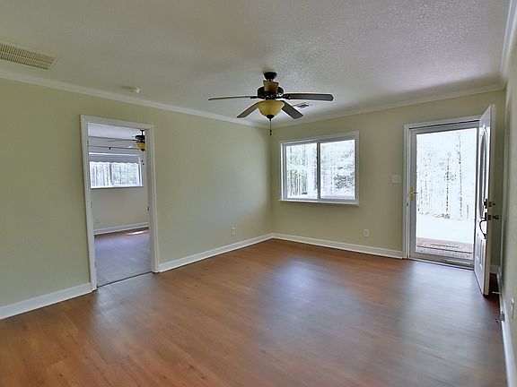 This home is located in a cul-de-sac and sits on 2.32 acres. Pretty vinyl plank flooring throughout most of the home. Living room is spacious and offers several ways for furniture placement. Good size kitchen and eating area. Great outdoor living space with a rocking chair front porch, a screen porch and a fire pit area with benches. New roof in 2017.