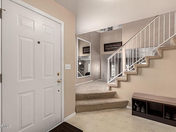 Nestled on a desirable cul-de-sac! Discover this beautiful 4-bedroom home that welcomes you with its 3-car garage (the third garage being an extended tandem!) and newer roof replaced in 2022 and windows on the east side replaced in 2024 to start. You're then welcomed into the home with a thoughtfully designed interior featuring a formal living room, a dedicated den/office, and a large family room paired with vaulted ceilings & a lovely bay window. Impeccable eat-in kitchen is equipped with plenty of cabinetry, and stainless steel appliances. Serene main retreat boasts a sitting area, plush carpet, a walk-in closet, and a private bathroom with dual sinks. One of the secondary bedrooms is conveniently located downstairs, perfect for overnight guests. Spacious backyard with a fragrant citrus tree and an open patio is ideal for creating unforgettable memories with loved ones & friends. With a pickleball court within walking distance in the community this truly is a rare gem. Make it yours today!