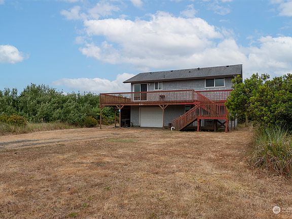 A rare opportunity for oceanfront property in lovely Ocean Shores that's a quick walk to the beach and just waiting for cosmetic updates to make it your own. Oceanfront properties are rarely listed for this price point - there is a huge amount of value in the land & location with this one if you want to rebuild. Two nice sized bedrooms and a full bath on the main level along with a great room style layout. Lower level has a bonus room and additional half bath. Watch the amazing sunset over the ocean from the deck which surrounds the upper level. The large flat, level lot is a blank slate ready for your landscaping touches. Put in some udpating work and this great property would shine as a beach getaway property. Beach time is the best time!