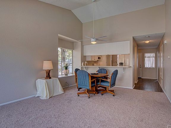 Wow, Wow, Wow!!! Very desirable end /upper unit with plenty of natural light. Move-in condition ready for a family to relax and enjoy. This home has new paint and new carpet. A spacious home with vaulted ceilings and 2 balconies which are an extension of the living area. Both bedrooms are over sized with walk in closets and on-suite bathrooms great for privacy. An interior laundry room off the kitchen. A bright open kitchen to the living room great for entertaining and family gatherings. All appliances are included. Central heat and A/C. A 1 car garage and an additional private open parking space near the home with plenty of guest parking. Complex is private and quiet. Don't let this one pass you by! This home is priced to sell!