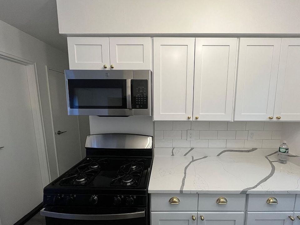 Enjoy comfortable living in this stunning two-bedroom apartment that perfectly blends style and convenience. The modern kitchen is designed with sleek white cabinetry, high-end finishes, and stainless steel appliances, including a microwave. Gleaming hardwood floors extend throughout the space, adding warmth and sophistication. The apartment also features ample closet space, an efficient heating system, and a beautifully tiled bathroom with a clean, contemporary look.