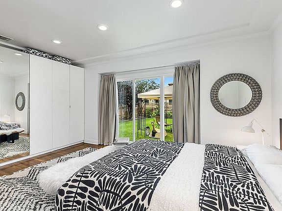 A rare find in Valley Village, 4 bedrooms with a bonus room, a natural traffic flow through the house and out to the pool with unique designer features and upgrades. The 4 bedrooms and bonus room allow for 3 bedrooms and two offices for the couple that work from home. The pool features an outdoor shower with mid-century modern tile and new landscaping. The new kitchen includes all new walnut finish cabinets, open shelves, HappyWalls mural, built-in banquette, beverage center and fireplace. Both bathrooms are fresh, new and modern. The shared bath has a stand-alone tub, a dual sink with floating vanity and lots of built-in storage. The primary bedroom includes a shiplap-covered fireplace, a sliding door to a private patio and a tray ceiling. Facilities include fully owned solar, tankless hot-water heater, central A/C and a 4-car driveway with a 2-car garage. Matterport video on website. Or to request a tour, send request to email and we will get back to you to set up an appointment.