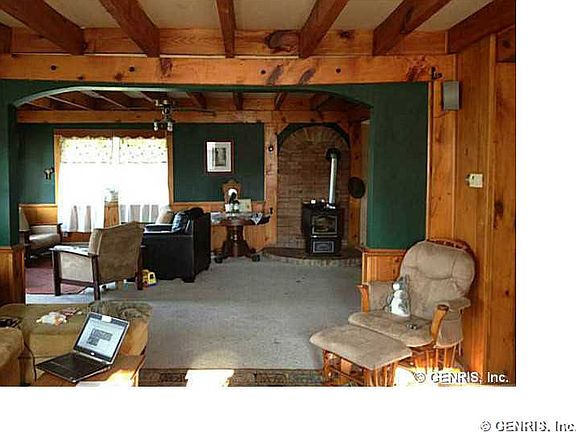 4 bedroom Colonial on 13.4 acres. Large living room & dining room, 2nd floor laundry, 14x10 run in shed for horses, upstairs recently remodeled with some finishing touches needed, new flooring on 1st floor, new pellet stove in living area to help with heating costs, office area, mud room, hot water baseboard heat. 10 minutes to schools and village. lots of room to run.