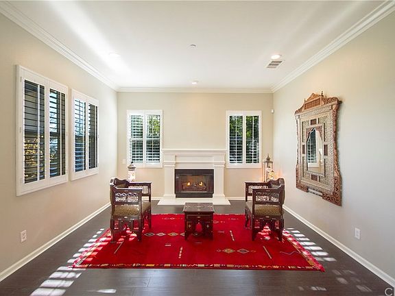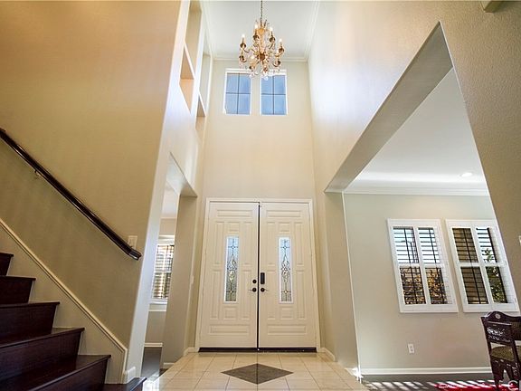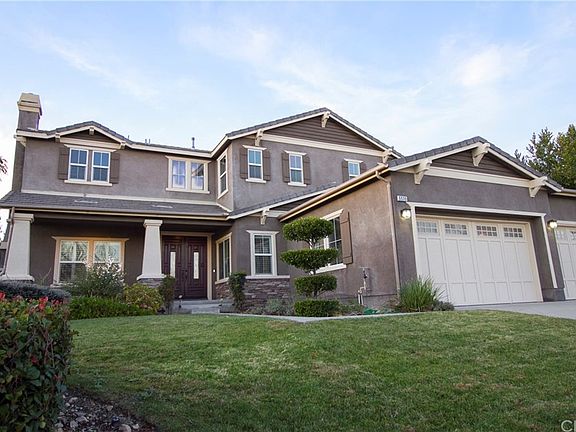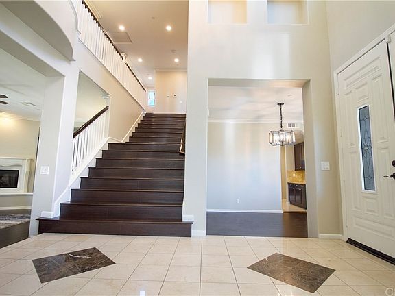 This beautiful contemporary residence offers the elegance and comfort any resident would desire near the majestic mountains of Rancho Cucamonga. You are welcomed into the marble flooring foyer under its two-story high suitably placed crystal chandelier. The aforementioned residence with its two fireplaces and modern home security system is upgraded and well taken care of commencing with the chef's granite countertop kitchen equipped with KitchenAid stainless steel major appliances: double wall ovens, fully integrated dishwasher, and freestanding French door refrigerator with bottom freezer. Upscale laminate wood floors are appropriately laid throughout the house including the magnificently wide staircase. The great room is inciting with its integrated surround sound entertainment system. Light and dark-toned plantation shutters, refined cabinets, crown moldings, baseboards and LED recessed ceiling lighting enrich this recently painted interior architectural home. The upstairs bathroom is fully and fashionably remodeled with its dual sinks and two showerheads. Speed Queen Commercial Heavy-Duty washer and dryer are conveniently hooked upstairs in a separate room. Attached to the home is a three-car garage with epoxy floor coating. This grand lot boasts a vastly open well-groomed lawn with fruit trees on the side. The scenic night views from the upstairs bedroom balcony makes this a lovely location for any relaxing evening.