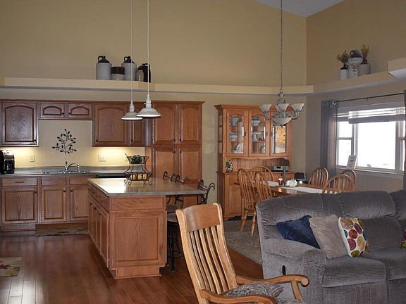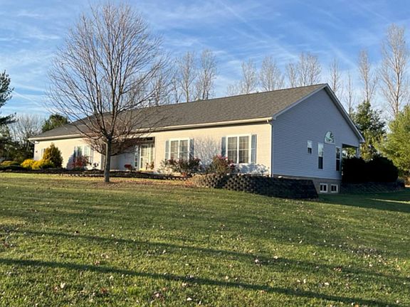 Country Living at its finest! Over 3300 sf ft of living area incld fin bsmt on 3 acres. Nicely appointed open concept ranch home w/vaulted ceiling, oversized kitchen & eating space, center island for added seating, plant ledge. Large, to die for, mud room w/42'' cabinets, laundry, walk in pantry. Owners' suite w/private bath opens to a magnificent 12' x 86' covered porch. Two additional bedrooms, private office & study nook. Three additional buildings ALL w/water -32' x 56' w/divider wall, concrete flr, 200 amp electric, 2 slider & man doors; Cow barn 26' x 32' w/loft, slider, man door, 100 amp electric; Sheep barn 24' x 20' w/roll up door, concrete, 30 amp electric. Fenced paddocks w/options for more. Newer roof, well pump/pressure tank, heat pump, some windows/doors, water softener.