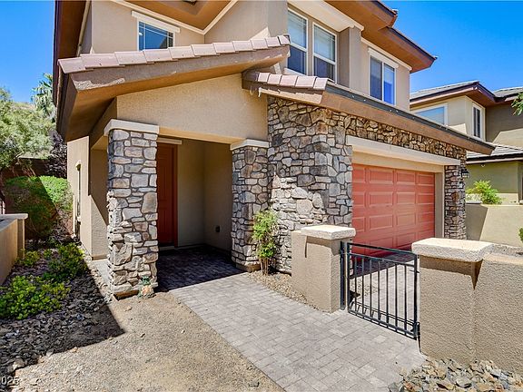 Beautiful Pulte home in the South Summerlin Amado Community! Walking distance to community park & pool! Courtyard entry! 2 tone paint. Great rm with tile flooring downstairs. Kitchen with granite counters & upgraded cabinets, pantry, dining area. Beautifully landscaped, with covered patio & gas stub. Large Master with custom shower! Water softener & all appliances included!