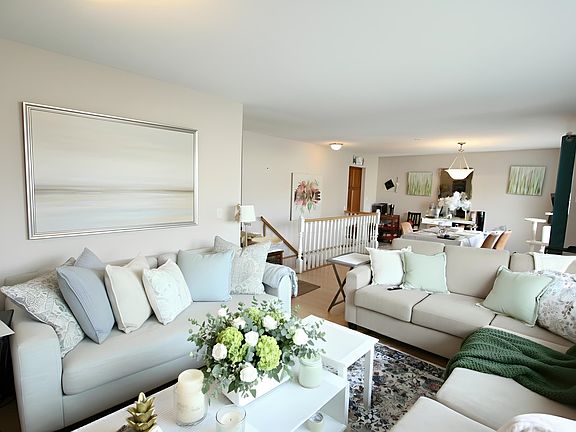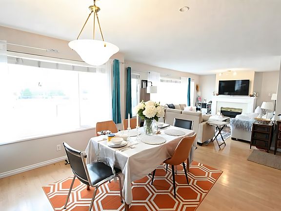 Open-concept layoutLarge kitchenSpacious dining areaCozy family roomLaminate flooring