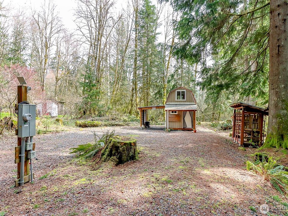 Dry, level building lot available in Echo Valley with 2 RV hookups, electricity and water on site. Plus, a tiny home for your use!! Fantastic land for development or enjoy with the current improvements. Tiny home is a 10x20 shed built on pier blocks w/ a murphy bed on main floor, and more sleeping space in the loft. Owner used a frost-free shower, and had a composting toilet. Property backs to permanent green space - beautiful and private location. 220 amp service. Lean-to for dry storage. Firewood and firepit will stay. The county maintains the roads, which are plowed during snowstorms. No HOA. Neighboring properties have septic systems. Terrific location near Mt. Rainier and the town of Ashford.