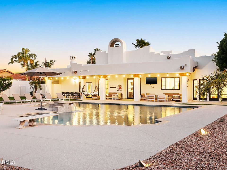 SIX FIGURE INCOME PRODUCING PROPERTY. This luxury retreat features 5 beds, 4.5 baths, office, and full basement. Set on a sprawling estate lot this property is only minutes from Scottsdale's top attractions. This home showcases some of the finest interior finishes and outdoor amenities you can find in Scottsdale. The open concept great room has and inviting living area and both a casual and formal dining. The custom kitchen lies at the heart of the home and is fully equipped with a luxury appliance package, broad island and custom walk-through pantry. Primary suite features a fireplace, seating area, large walk-in closet and a stunning spa-bathroom. The expansive outdoor space is a must see with a huge heated pool, hot tub, full-size tennis court, putting green and play structure. No HOA