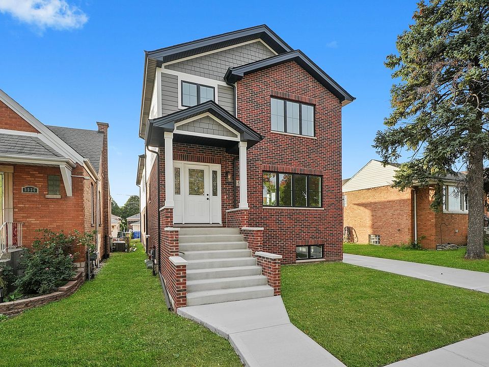 Welcome to this brand-new, all-brick 3-story home with a rare side drive, perfectly located in the heart of Garfield Ridge. Built with precision and quality craftsmanship, this impressive 5-bedroom, 4-bathroom residence blends elegant finishes with modern convenience and thoughtful design. Step inside to discover gleaming hardwood floors throughout, an open-concept layout, and a spacious family room that opens directly to the backyard patio - perfect for entertaining or relaxing. The chef's kitchen is a true showpiece, featuring a large center island, custom soft-close cabinetry, quartz countertops, and a full stainless-steel appliance suite. The upper level includes a convenient laundry room and a luxurious primary suite offering a walk-in closet, double-sink vanity, soaking tub, and separate shower. All bedrooms are generously sized, providing flexibility for family, guests, or a home office. The finished lower level offers additional living space - ideal for a recreation room, home gym, or extended-family setup. Modern systems include 200-amp electrical service, energy-efficient windows, and high-performance mechanicals throughout. A new concrete side-drive leads to the detached 2-car garage featuring an 8-foot overhead door, designed to accommodate oversized vehicles or SUVs. The newly poured patio and walkways complete this move-in-ready home. Nestled on a quiet, tree-lined block close to parks, schools, shopping, and major transportation, this Garfield Ridge new construction offers the perfect balance of luxury, location, and lifestyle.