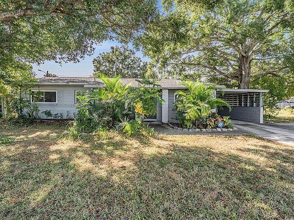 One or more photo(s) has been virtually staged. *Seller is offering 10K towards a new floor!* This 3-bedroom, 2-bath block home offers a great opportunity for homebuyers or investors looking for space and potential in a desirable location. Step inside to find an open-concept layout featuring a spacious family room that flows into a modernized kitchen with shaker cabinets, granite-style countertops, stainless steel appliances, and an island perfect for meal prep or entertaining. The primary bedroom is generously sized with its own en-suite bathroom and walk-in closet, while the two additional bedrooms share a second full bath. The enclosed back patio includes a functional laundry area and additional storage space. Outside, enjoy a large, fully fenced backyard—ideal for pets, play, or future additions. A covered carport offers convenient parking, and mature trees provide shade and privacy in the front and back yards. Centrally located in a quiet neighborhood, this home is just minutes to shopping, dining, downtown St. Pete, and area beaches. With a little TLC, this property could truly shine—schedule your showing today!