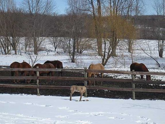 Nice opportunity for horses lovers. This property offers a 30x40 horse barn with 6 stalls and a 7200SF indoor riding arena with storage for hay, fenced pastures and a pond. The home has 5 BDRMS, 3.5 BA, formal dining, 1st. fl master BDRM/BA and laundry. More land is available. 30 min. from Henrietta. This horse farm is ready for you - just bring the horses.