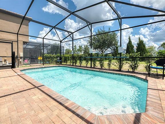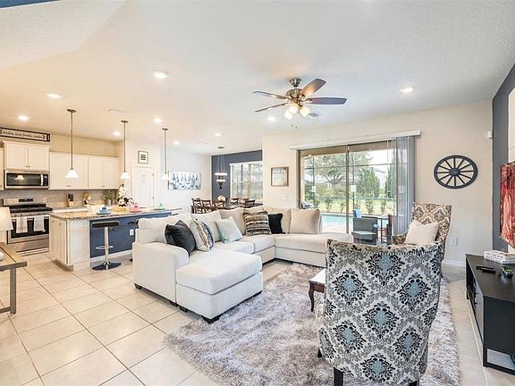 Welcome to your perfect getaway! This stunning 5-bedroom, 4-bathroom home is located in a resort-style community and offers everything you need for comfort, relaxation, and fun. Fully furnished and thoughtfully designed, this home features a spacious open-concept layout, with an updated kitchen that overlooks the bright and inviting living room perfect for entertaining or unwinding with family and friends. Step outside to your private pool and covered back patio, ideal for soaking up the Florida sunshine or enjoying a meal outdoors. The 2-car garage adds convenience and extra storage. Inside, each bedroom is generously sized, providing plenty of space for everyone. The primary suite is a true retreat, featuring a luxurious ensuite bathroom with upscale finishes for a spa-like experience. As part of a resort-style community, you'll enjoy access to amazing amenities including a community pool, fitness center, sports courts, and a beautifully appointed clubhouse. Rent includes full access to all resort facilities, so you can enjoy the complete resort lifestyle right at home. Located just minutes from Orlando's top attractions, including Walt Disney World, and only a short drive from popular local shops and restaurants, this home offers the perfect blend of excitement and everyday convenience.
