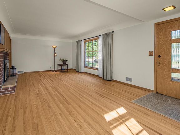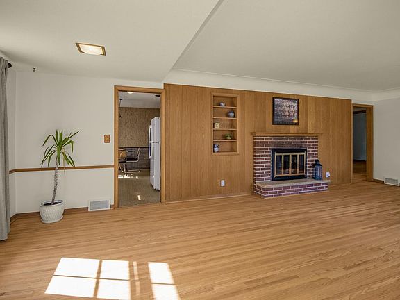Welcome to this charming 4-bedroom rambler nestled in the heart of Brooklyn Center! Gleaming natural wood floors and a sun-filled picture window create a warm welcome. The spacious living room features a cozy wood-burning fireplace, brick surround, and built-in bookshelf, flowing into a formal dining room with a built-in hutch. The main level offers three generous bedrooms and a full bath. The kitchen includes a large pantry, new dishwasher, and newer fridge. Step out to a private backyard with a concrete patio—perfect for relaxing or entertaining. The finished basement adds a large family room with another wood fireplace and blower- a great supplemental or alternative heat source- plus a 4th bedroom. Both lower-level rooms feature new egress windows. You'll also find a spacious laundry/work area with new Whirlpool washer/dryer (2025). Ample storage includes a new furnace and water heater (2024). Just blocks to Lions Park and Centerbrook Golf Course, with easy access to shopping, transit, and highways!