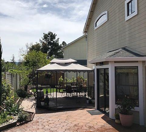 Just dropped the Price 50K!! Gorgeous remodeled, light and bright home. Offered by the original owner, this home has had extensive remodeling including travertine entry, new laminate & carpet floors, custom fireplace, remodeled kitchen with new white cabinets, counter tops, pass thru, back splash and more. High ceilings, custom crown molding, texture & baseboards. New paint, remodeled bathrooms with new cabinets, tile, sinks and fixtures. Both upstairs bedrooms have built in cabinetry. There are French doors lead from the living room to a beautiful landscaped, very private backyard with mature fruit trees, grape vines, roses, lawn, new vegetable garden box, covered gazebo with extensive seating, custom stamped concrete patio and deck. Central Air conditioning & Double pane windows. The large 2 car garage is finished with drywall and a window. All of this within walking distance of restaurants, shopping. Super close to Hwy 101 & Hwy 85 walking distance to TRANSIT!.